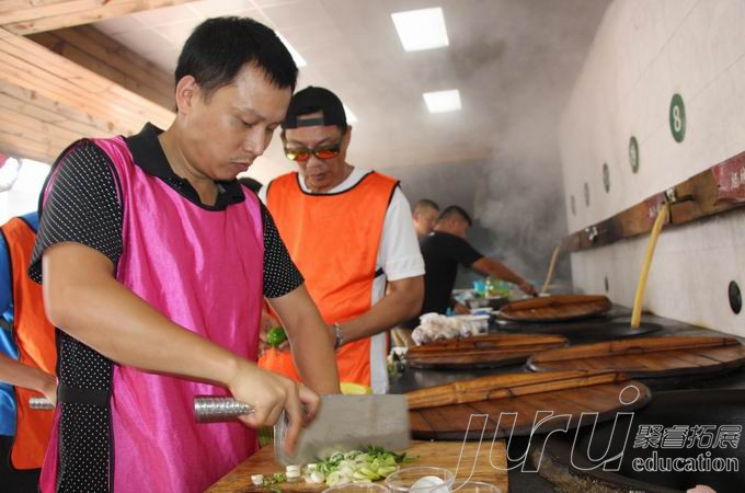 开始做饭了,俗话说“巧妇难为无米之炊”没有食材,再好的厨子也没办法,教官在拍卖食材,如果想要有食材,需要团队拿出自己智慧来买啊。瞧瞧,大家正紧张的进行拍卖会呢!